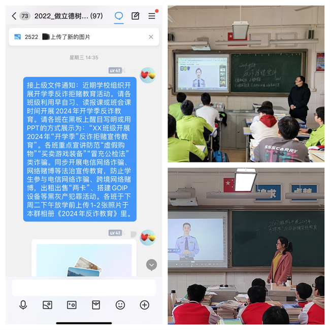 “虚假购物”“买卖游戏装备”“冒充公检法都是常见的诈骗手段。”各班组织开展“开学季”反诈拒赌主题班会,老师们重点宣讲了各类诈骗形式,有效防治学生参与电信网络诈骗、跨境网络赌博,出租出售“两卡”、搭建GOIP设备等黑灰产犯罪活动。