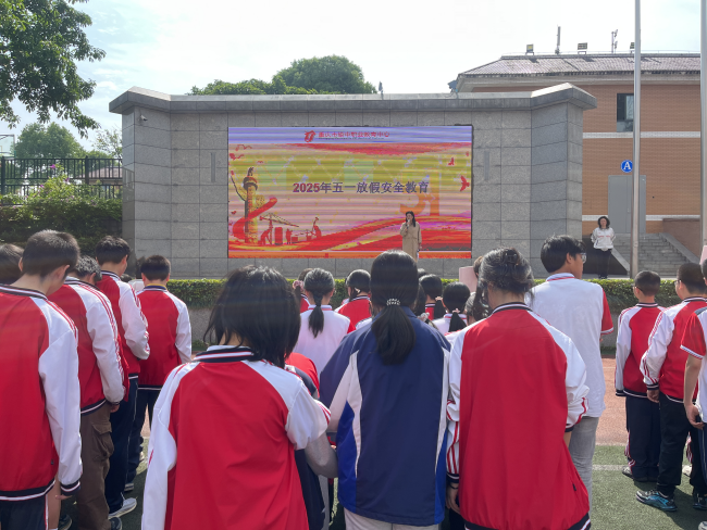 4月30日上午,全校师生在操场集中,参与“2025年五一放假安全教育”活动。副校长彭茜就五一劳动节放假安全注意事项展开专题教育,围绕交通安全、消防安全、防溺水、防诈骗、心理健康等方面,从法治角度,提醒全校师生假期注意安全。