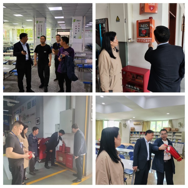 4月30日下午,由校长黄超骏带队,副校长彭茜、安稳办负责人及工作人员陪同,对教学楼、实作楼、食堂、学生公寓、图书室、围墙、操场等重点领域,进行了拉网式排查,及时发现问题,提出整改要求,落实到位。同时,学校严格落实保安门卫安全查验制度、车辆和来访人员登记准入制度,加强夜间巡逻防控力度,确保留校学生安全。
