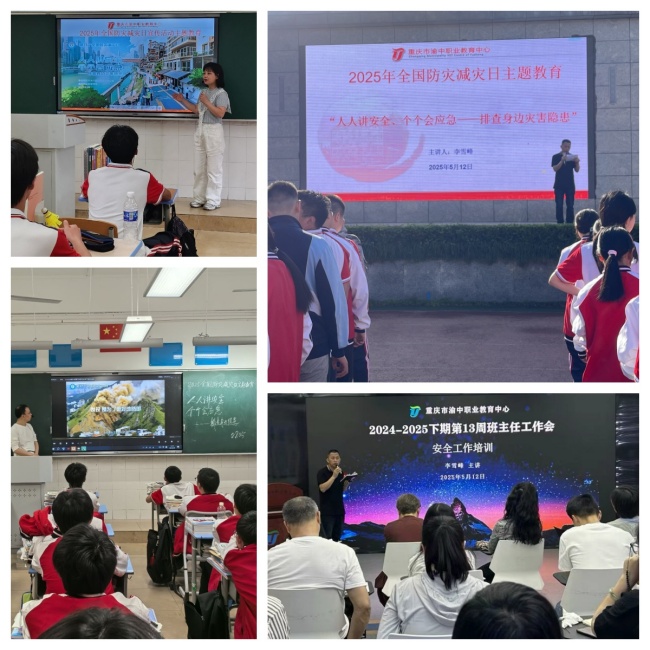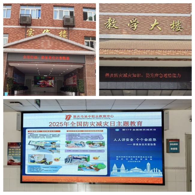 5月12日是全国法定第十七个“防灾减灾日”,为深入贯彻习近平总书记关于防灾减灾救灾重要论述精神,根据《重庆市渝中区教育委员会关于开展2025年防灾减灾日宣传活动有关工作的通知》内容,围绕“人人讲安全、个个会应急—排查身边灾害隐患”主题,重庆市渝中职业教育中心于近期组织开展了2025年全国防灾减灾日宣传活动。