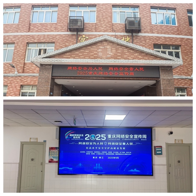 活动前,学校制定了《渝中职教中心2025年重庆网络安全宣传周活动方案》。9月15日起,学校实作楼电子屏幕播放宣传标语和宣传海报PPT,营造出浓厚的学习氛围。