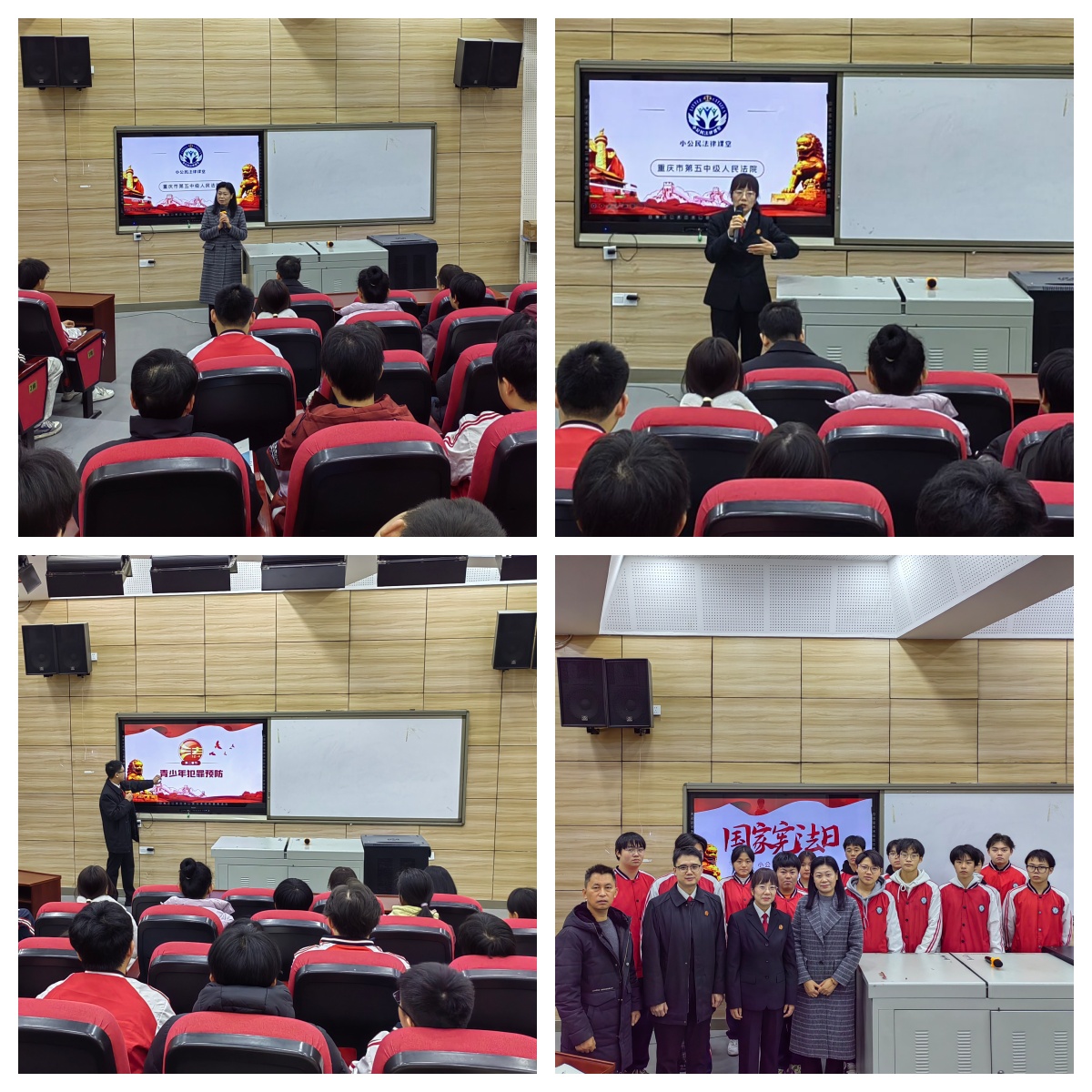 12月5日,学校邀请重庆市第五中级人民法院刑一庭庭长、学校法治副校长陈霞及少审庭法官助理吴忧到校,开展了宪法宣讲进校园—“国家宪法日”法治教育主题讲座活动。