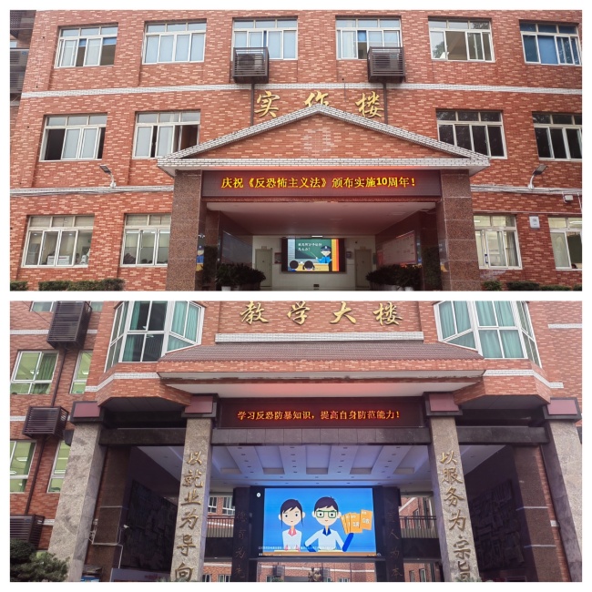 12月17—24日,学校按照制定的《渝中职教中心2025年反恐怖主题教育活动方案》,在教学楼、实作楼的电子屏幕滚动播放反恐怖主题教育宣传标语和视频,有效营造出了反恐怖教育宣传氛围。