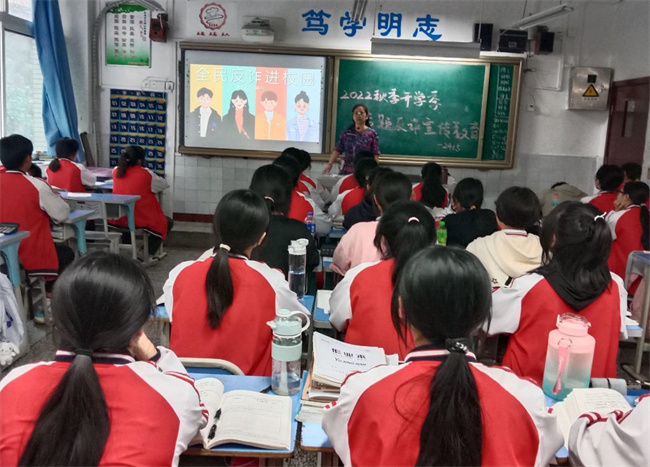 首先,学校制定了《2022年秋季开学季专题反诈宣传活动方案》。同时,学校教学楼、实作楼电子屏幕滚动播放反诈骗宣传海报及视频,营造出浓厚的学习氛围。接着,学校通过给学生布置家庭作业的方式,在学生和家长中开展了《反诈宣传问卷调查》活动,针对教职员工开展了《防范电信网络诈骗试题》答题活动;另外,各班级还开展了反诈骗专题教育主题班会活动。